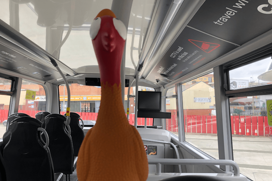 We will begin to start updating our current fleet in the West Midlands and Coventry with the new rubber chicken bell from Monday 5th April to help us keep abreast of the competition in customer satisfaction. So cluck out for a new bell on your bus very soon!